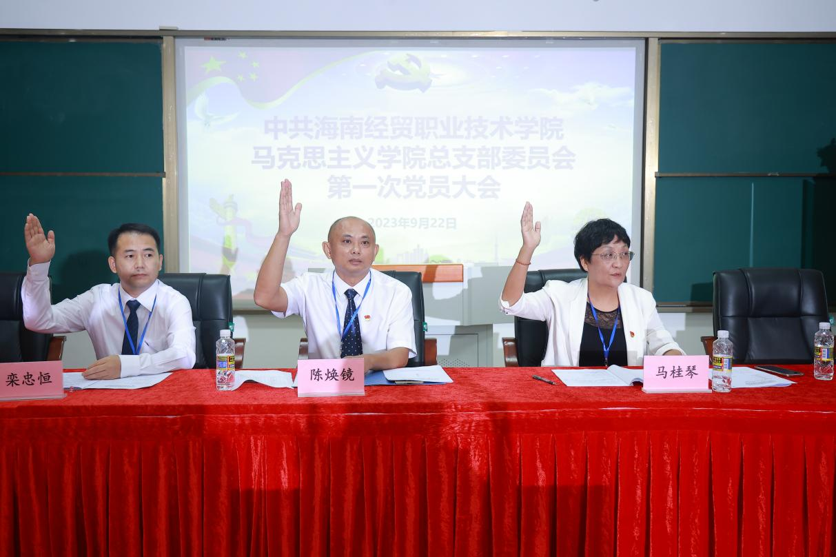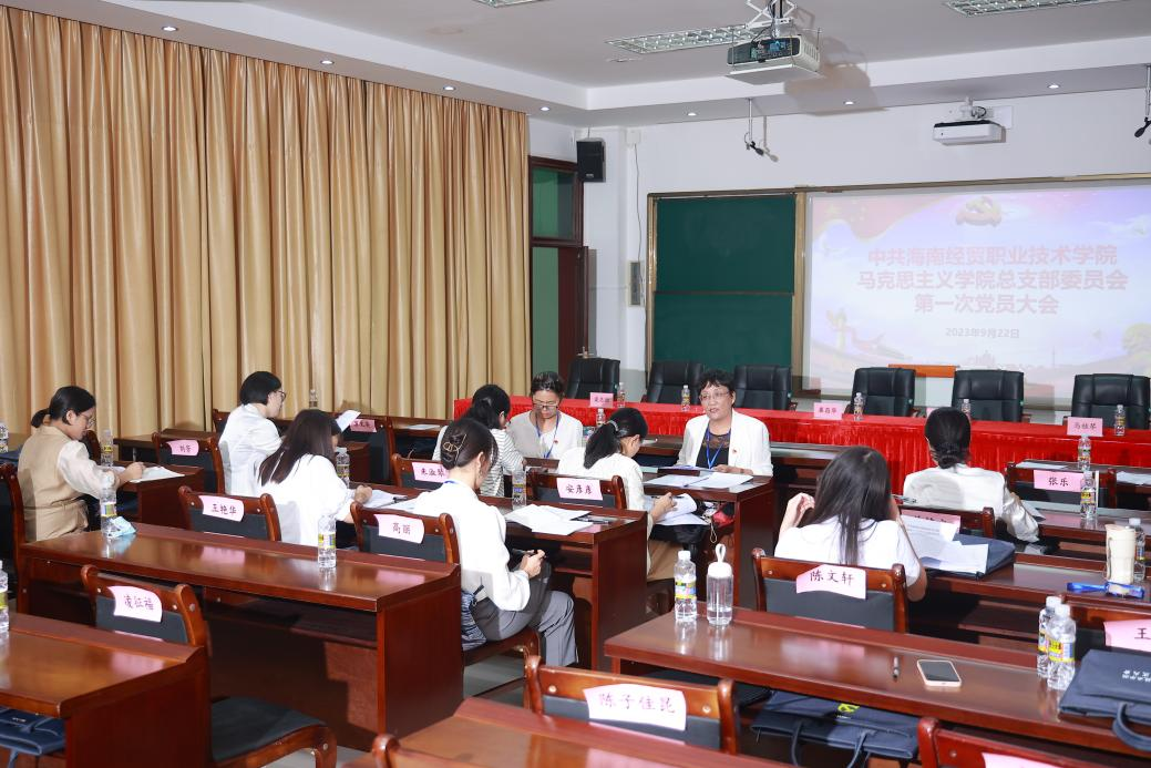 2023年9月22日下午14:30,中国共产党海南经贸职业技术学院9428cn太阳集团古天乐总支部委员会第一次党员代表大会在海南经贸职业技术学院学术交流中心105会议室胜利召开。