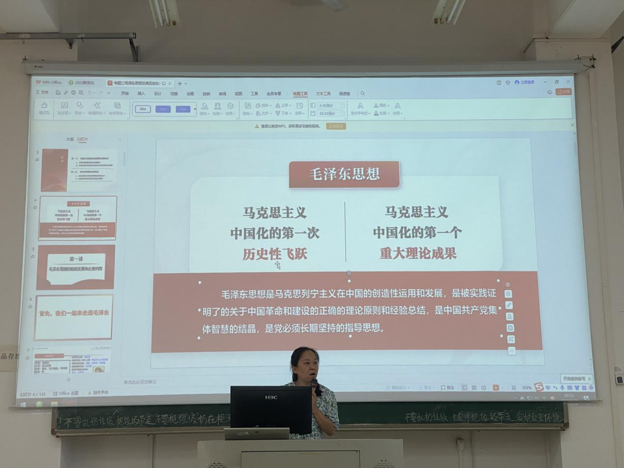 随后孙雪丽老师对第一章《毛泽东思想及其历史地位》的教学重难点、注意事项以及最新的文件精神等方面进行了阐释。高丽老师为大家具体讲授了走进毛泽东以及毛泽东思想的形成和发展这两个部分的内容。