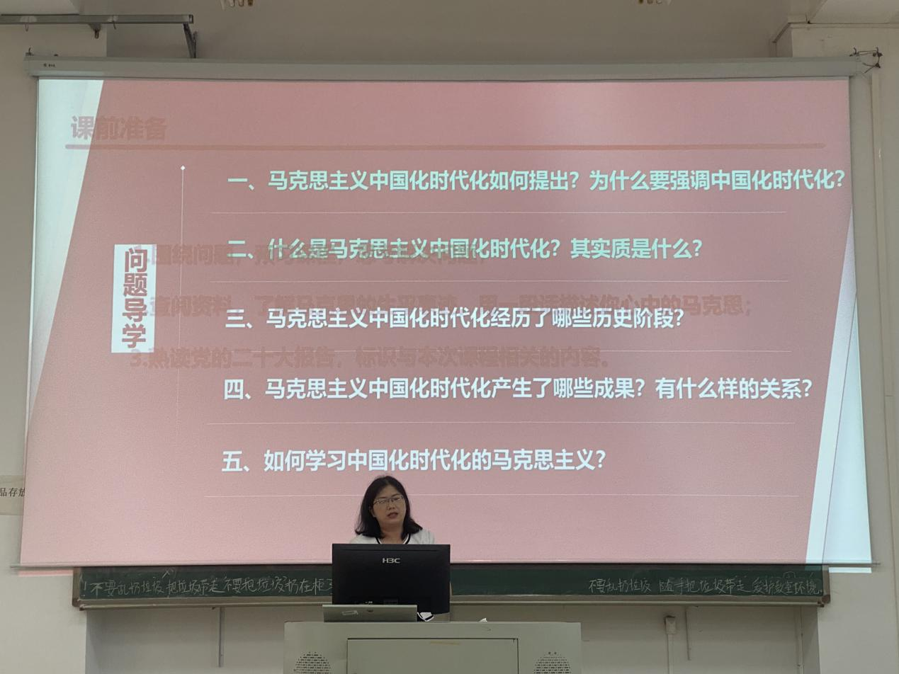 本次备课,首先进行的是导论部分的备课,吴春雨老师介绍了导论《马克思主义中国化时代化的历史进程与理论成果》这部分的教学重难点,学情分析、教学创新和教学设计思路。刘芳老师梳理了整个导论的讲解思路,详细介绍了运用哪些案例来吸引学生的兴趣,围绕哪些知识点给学生讲深讲透,课上时间如何更好分配等方面。