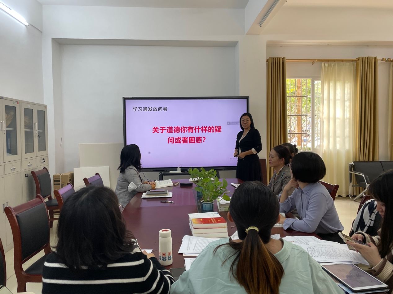第三,钟慧、王艳华、常彩霞三位老师分别针对第一节《社会主义道德的核心和原则》以及第二节《吸收借鉴优秀道德成果》教学内容做了主旨备课;吴春雨、黄丽娟、张乐三位老师就第三节《投身崇德向善的道德实践》教学内容做了主题发言。与会教师在讨论环节各抒己见,进一步形成了教学合力,就“学雷锋”融入第五章《遵守道德规范 锤炼道德品格》的教学方面达成了共识。