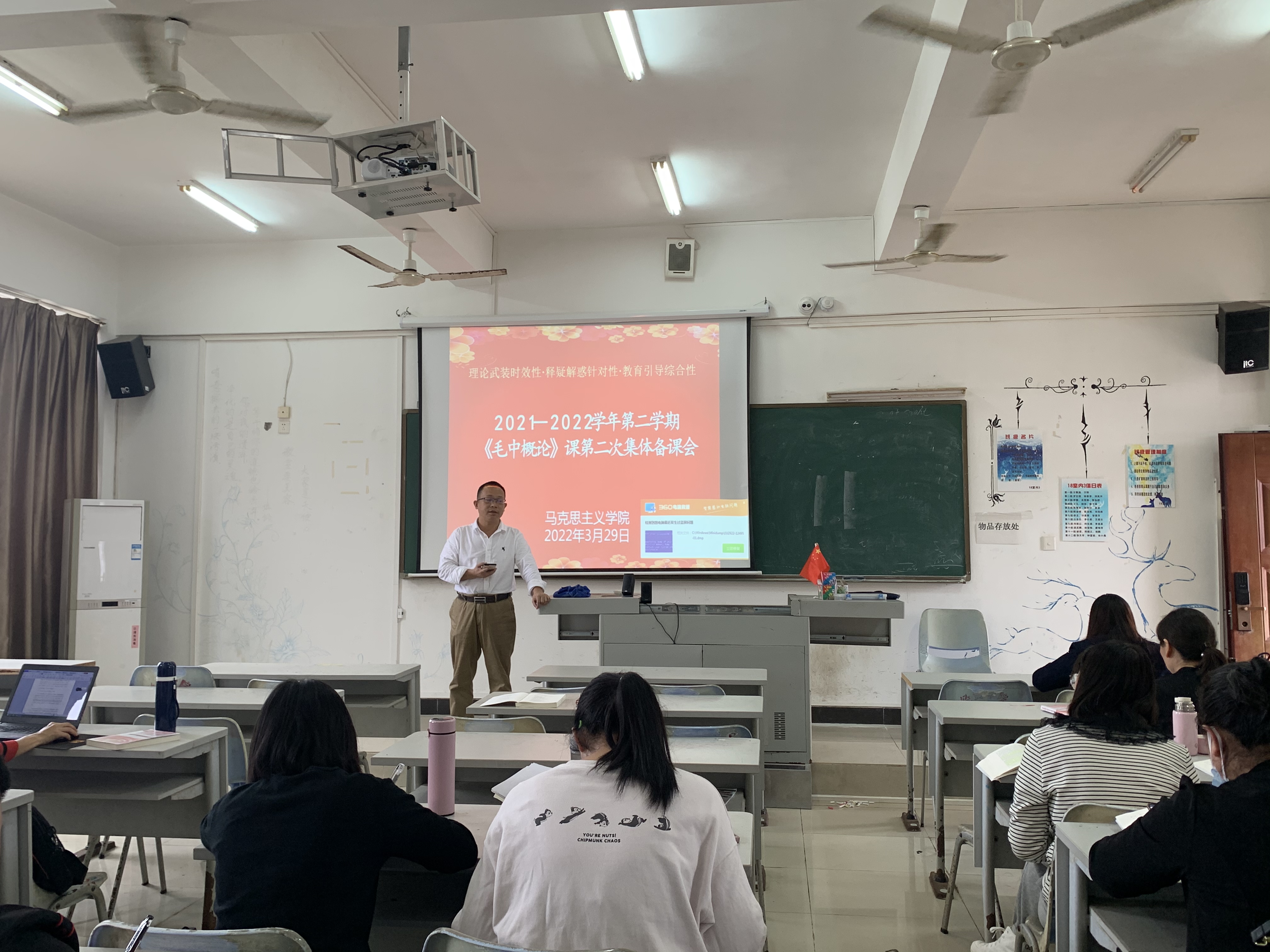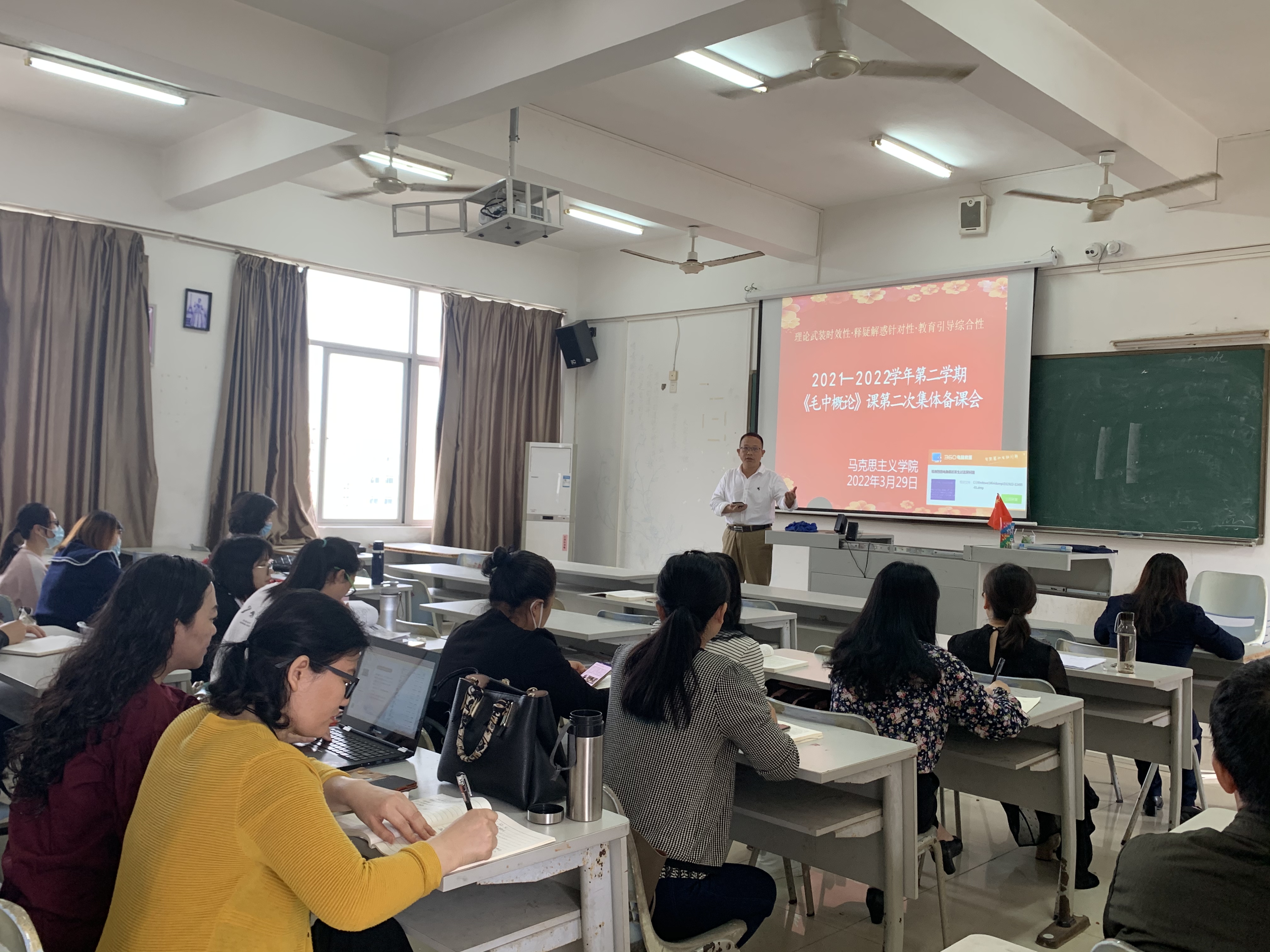 3月29日下午,9428cn太阳集团古天乐在第一教学楼525教室举行本学期第二次“概论”课集体备课会,会议由教学副院长胡明辉主持,本学期所有担任《毛泽东思想和中国特色社会主义理论体系概论》课程的专兼职任课教师参加会议。