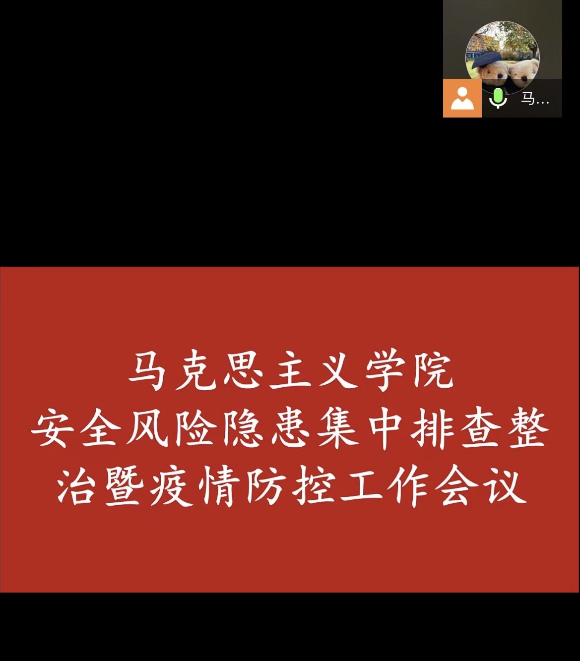 会议伊始,马院长传达了学校疫情防控工作会议的重要指示:“当前海南省疫情防控形势严峻,海口市部分地区正处于封控排查关键阶段,我院全体教职工要高度重视,严格遵守学校防控要求,坚持习近平总书记“人民至上,生命至上”的理念,在行动上严格按照党委书记张继友提出的“从严从紧、联防联控、压实责任、守土有责”,作为教师更要以身作则,非必要不离开海口,不参加聚集性活动;对家属、租户认真传达校门出入管理规定,做到“两码一证”随检;每日准点定时填报疫情防控信息系统,重视信息回复,遇疫情管控等突发事件及时上报,对学生安全健康负责;不发布,不传播,不相信与疫情相关的非官方证实信息;及时关注教学安排通知,遵照学校相关指示,保证我院教学秩序的稳定。”