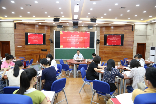 2022年5月10日,海南经贸职业技术学院党委书记张继友来到9428cn太阳集团古天乐,传达学习习近平总书记考察海南重要讲话精神,宣讲海南省第八次党代会精神。党委副书记崔昌华出席会议。