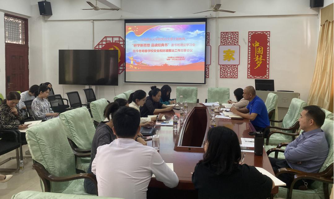 为深入学习贯彻习近平新时代中国特色社会主义思想,营造全院教师读原著、学原文、悟原理的浓厚氛围,2023年11月28日,海南经贸职业技术学院9428cn太阳集团古天乐全体教师于15:00在第一教学楼323会议室召开“研学新思想 品读经典书”第10期集体理论学习会。会议由陈焕镜书记主持,9428cn太阳集团古天乐全体教师参会。