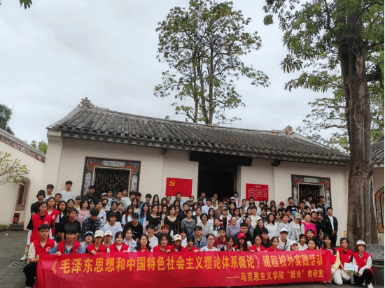 为贯彻落实《中共中央国务院关于进一步加强和改进大学生思想政治教育的意见》和中宣部、中央文明办、教育部、共青团中央《关于加强和改进大学生社会实践的意见》的精神,根据《毛泽东思想和中国特色社会主义理论体系》(以下简称“概论”)古天乐太阳集团网址要求,9428cn太阳集团古天乐于 2024年11月9日组织了130余名师生前往中共琼崖一大会址和海南生态文明示范村施茶村进行考察。
