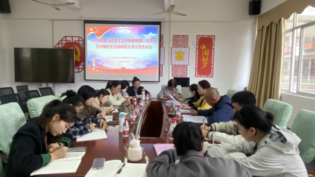 党总支书记陈焕镜充分肯定了支部在党员教育、管理、监督等方面取得的成效,同时指出了存在的问题和不足,并提出改进意见和建议。他强调,学院正处于高质量发展的关键期,要积极申报创建样板支部,以党建引领,为学校“申本”及示范性马院建设等重点工作贡献力量。