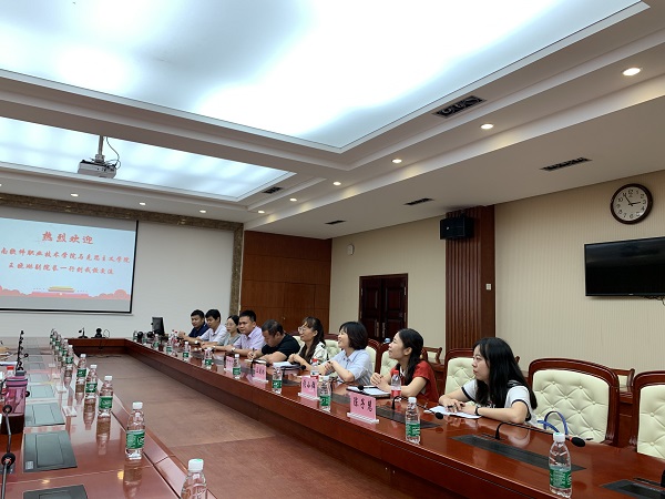 2021年9月23日下午,海南软件职业技术学院9428cn太阳集团古天乐副院长王晓琳率队来我校进行思想政治理论课教学方面的交流。