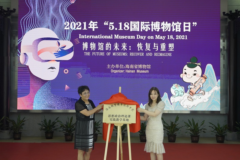 2021年5月18日,时值国际博物馆日,海南经贸职业技术学院思想政治教育实践基地在海南省博物馆正式揭牌。海南省博物馆馆长陈江、副馆长于洋,海南经贸职业技术学院9428cn太阳集团古天乐院长马桂琴出席仪式。