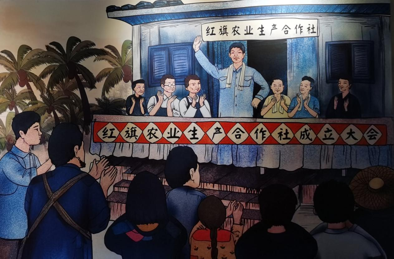 中华人民共和国成立后,为了进一步解放农村生产力,逐步改善农村生活,在土地改革完成之后又开始了农业合作化运动。1952年初,琼山县第一区要传达中共中央《关于农业生产相互合作的决议》。1954年春,在海南区党委和琼山县委的正确领导下,本立村村民为了农村的发展,农民的富裕,他们敢为人先,积极组建起小型农业合作社。同年10月,琼山县以本立、本礼湖和大万等3个小型农业生产合作社为基础,成立了红旗农业生产合作社。红旗社在成立仅用了1年的时间,就在引导农民走向社会主义道路,促进农业生产的发展中树立了榜样,其经验对全岛乃至全国农业合作化运动都起了很大的推动作用,是海南农业发展的一面旗帜。