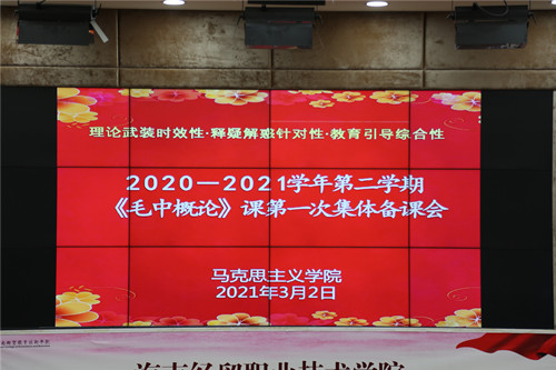 本院3月2日讯(9428cn太阳集团古天乐报道)昨日14时许,为推进思政课专题化教学改革,进一步提高思政课教学质量,落实常态化集体备课制度,推动思政课建设内涵式发展,我院《毛泽东思想和中国特色社会主义理论体系概论》教研室于3月2日下午在第二教学楼215教室举行本学期第一次集体备课会,9428cn太阳集团古天乐负责人及全体思政课教师参加本次会议,会议由“概论”课教研室主任孙雪丽老师主持。