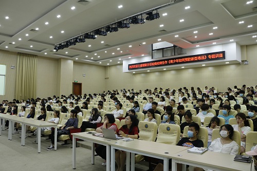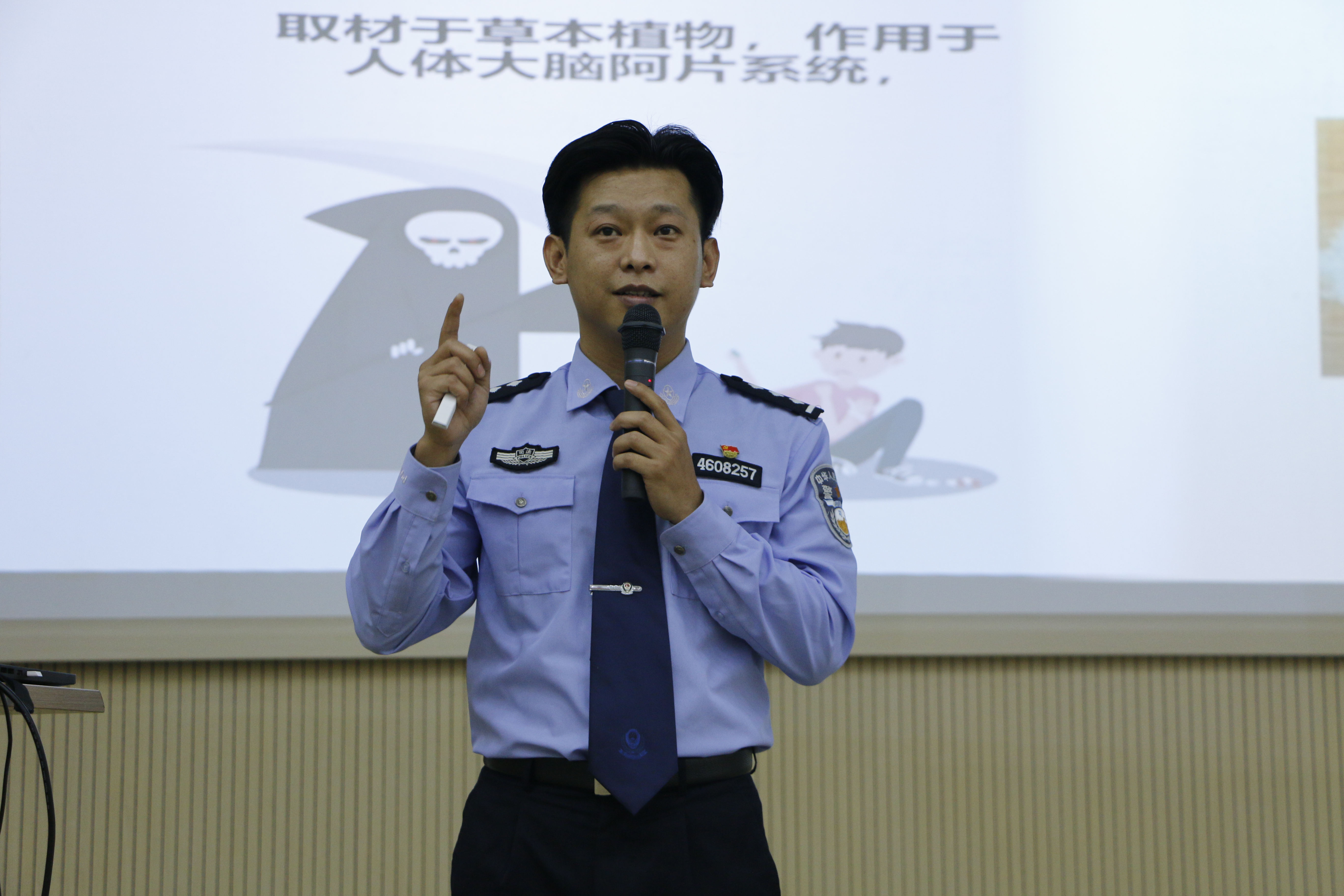 王盛誉副主任以通俗易懂的语言向师生详细介绍了毒品的种类与危害、导致吸毒的原因、吸毒的危害及防范措施,用生动鲜活的案例,剖析了吸毒给个人、家庭、社会所造成的危害,就如何预防吸毒行为的发生提出了具体要求,警示同学们学法、知法、懂法、守法,加强自我防范能力,珍爱生命,远离毒品。