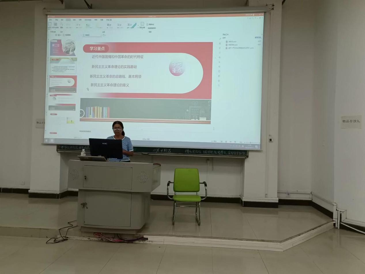 本次集体备课围绕第二章《新民主主义革命理论》和第三章《社会主义改造理论》展开。侯军英老师对第二章《新民主主义革命理论》就教学内容、教学重难点、教学方法、教学内容设计以及学情进行分析。安彦彦老师就第二章第一节近代中国国情进行教学展示,随后与会老师发言点评,陈焕镜书记强调在讲课中要注意时间节点,把握好节奏、有所取舍,也可以联系当前国际社会热点和革命年代的国情对比讲授,让学生感受当前幸福生活来之不易、不忘历史砥砺前行。