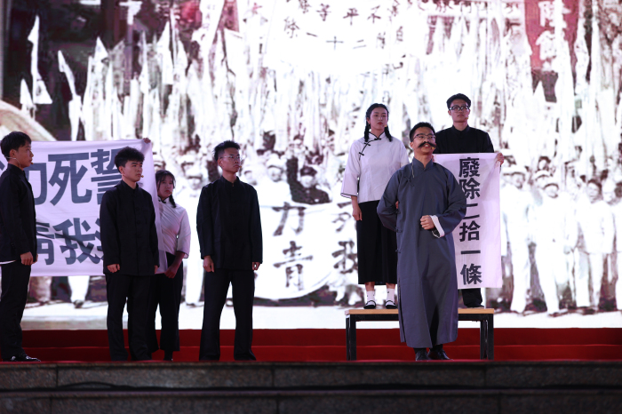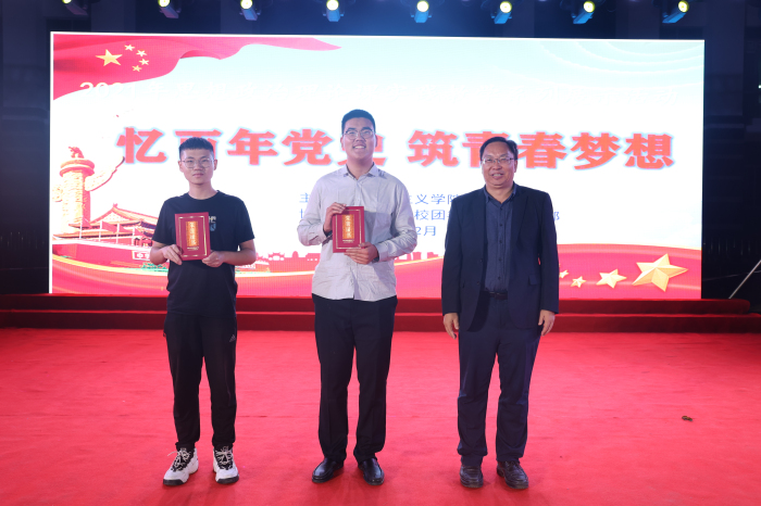 2021年12月8日晚,我院2021年思想政治理论课古天乐太阳集团网址系列活动之“忆百年党史 筑青春梦想 ”大型情景剧晚会在经贸广场举行。学校党委书记张继友、党委副书记崔昌华出席活动。 此次情景剧通过“救国篇:开天辟地”、“兴国篇:改天换地”、“富国篇:翻天覆地”、“强国篇:惊天动地”四个篇章来进行展示,所有节目均充分地结合了本学期《思想道德与法治》课程教学内容、党史学习教育、习近平总书记的七一讲话,以及十九届六中全会的内容,由思政课教师亲自撰写剧本、指导,2021级学生代表参演,共同为全校师生演绎了一堂有思想、有情感、有内涵的思政大课。 晚会在朗诵节目《总有人 正年轻》中拉开帷幕,通过朗诵者的娓娓道来不仅帮助观众们了解了100年间,中国青年赤诚不改、步履不停的历史故事,也瞬间将现场观众带入对党的100年间所经历的艰难与蜕变。随后各个节目跟随着各个篇章的主题为在场观众献上了一场视觉盛宴。